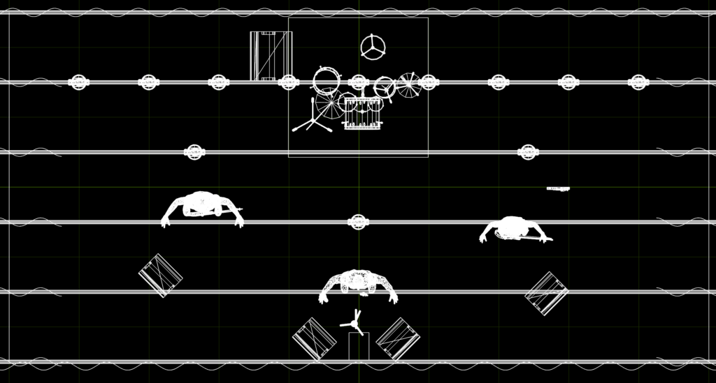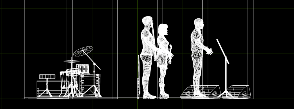 L'implantation exacte sur le plateau : instruments, musiciens, micros, retours. Ce que le régisseur de salle lit avant même de vous rencontrer.